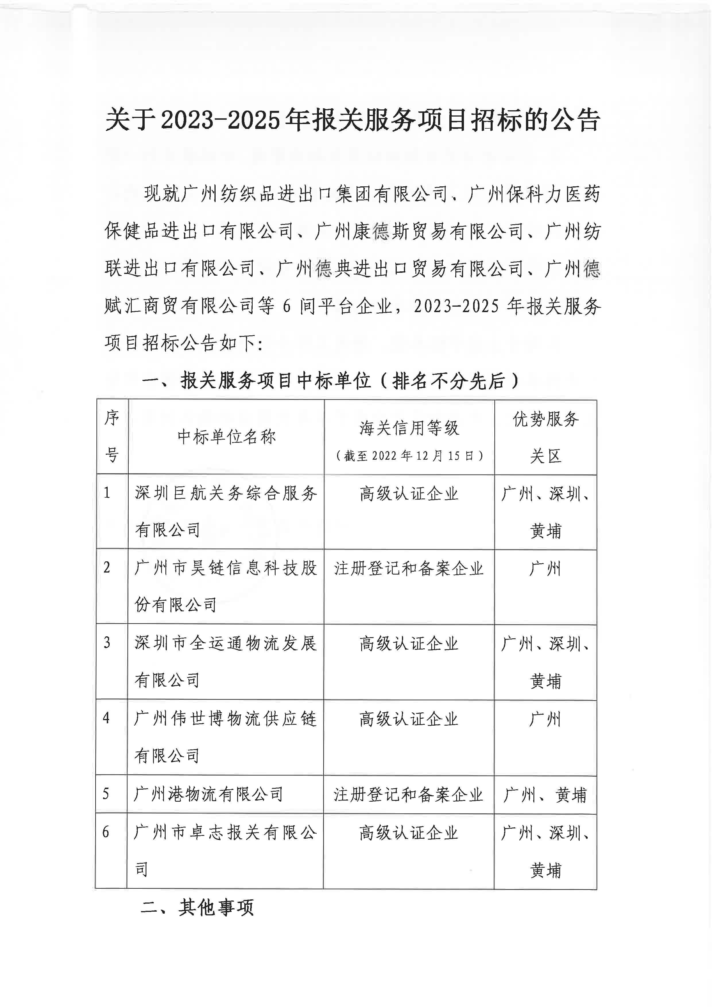 關(guān)于2023-2025年報(bào)關(guān)服務(wù)項(xiàng)目招標(biāo)的公告