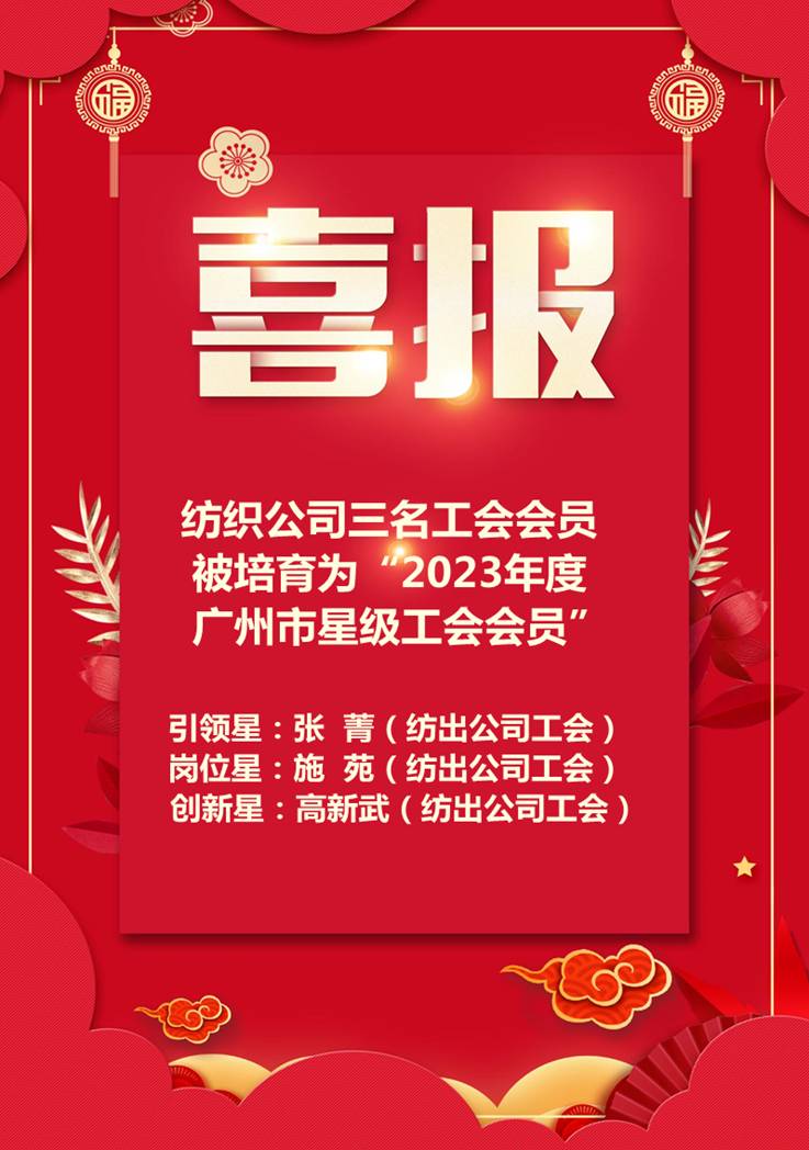 喜報:紡織公司三名工會會員被培育為“2023年度星級工會會員”